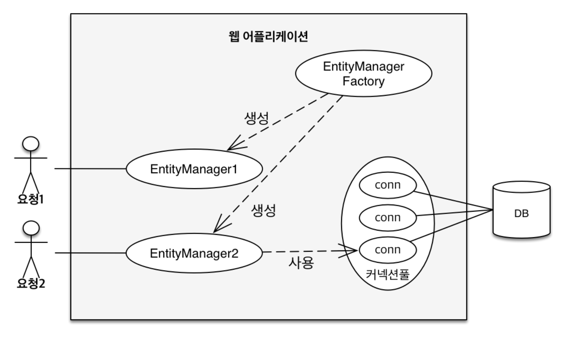 1. 요청이 들어오면 EntityManagerFacory에서 EntityManager를 생성
